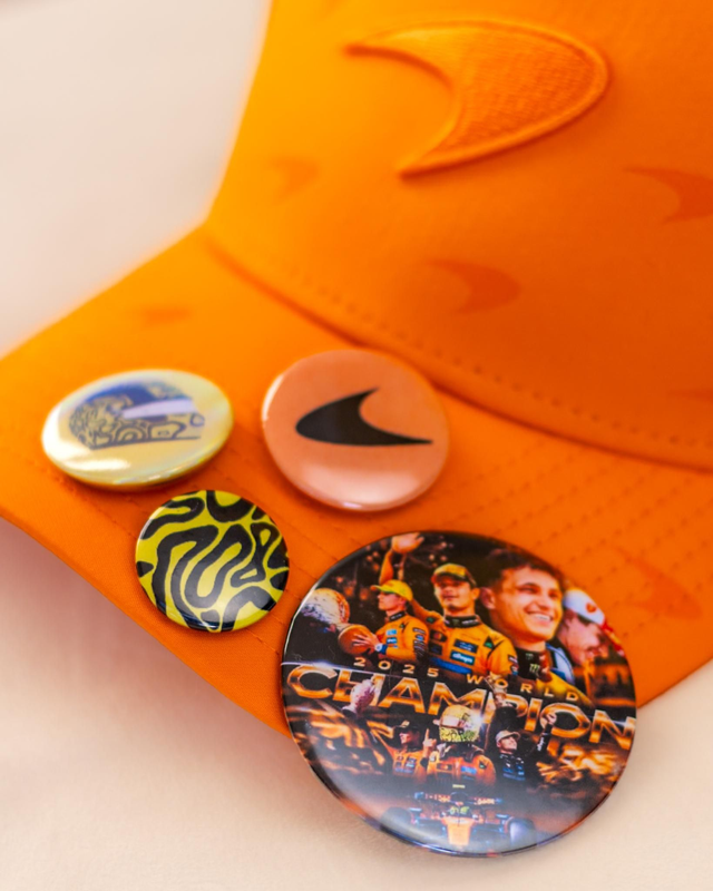 This pack includes one statement 58mm badge, two classic 32mm badges (one holographic), and one extra-small 25mm badge, all packaged together to make the perfect gift — or the ultimate self-treat.